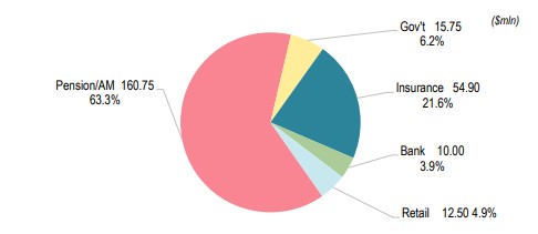 transaction was distributed to 22 institutional investors, with an overall blend of almost 50/50